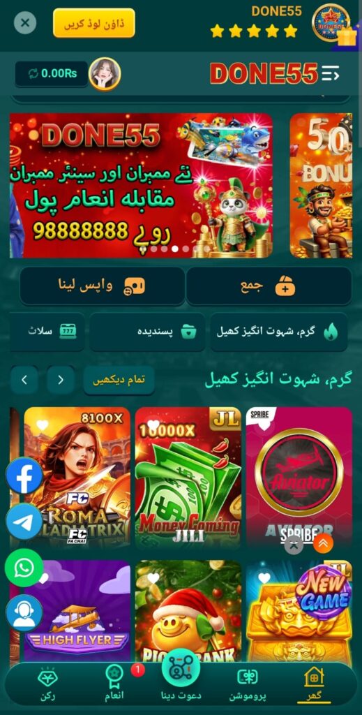 55Done APK is an Android-based earning and casino-style gaming application designed for users in Pakistan. It provides a mix of skill-based and chance-based games where players can participate for entertainment and potential rewards.Also try this 288Win Game.