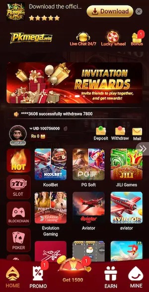 PKmega Game APK offers a variety of games in one platform, including slots and card-based games.