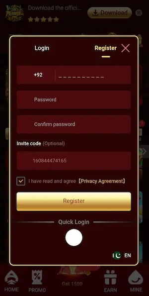 How to Register in EQ668 Game APK?