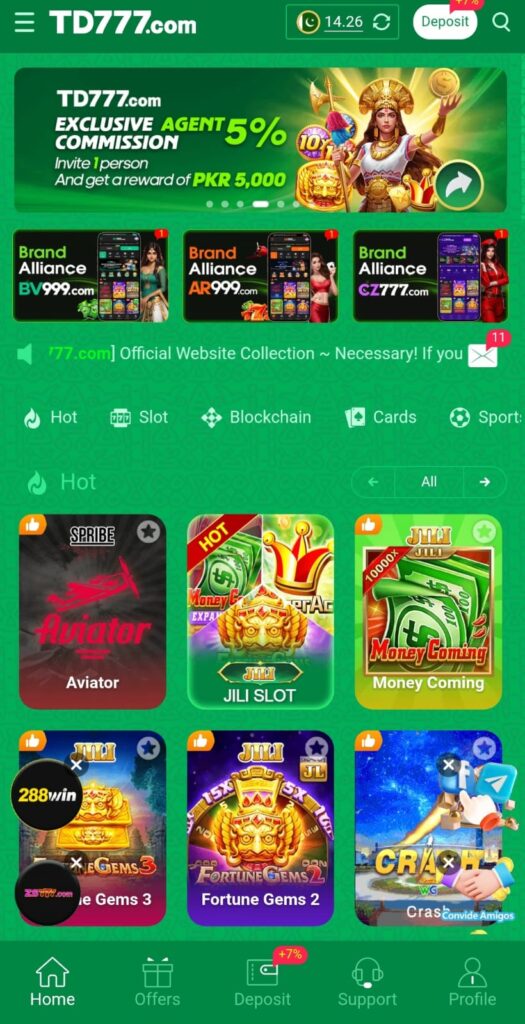 The mobile casino gaming market in Pakistan continues to expand, and TD777 Game stands out as a promising new platform. The app combines slot machines, card games, and quick mini-games inside one simple interface. Moreover, players can enjoy daily rewards, referral bonuses, and real money withdrawal options.