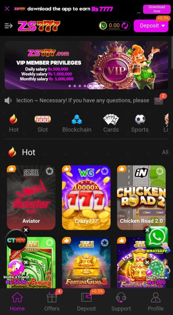 ZS 777 Game delivers a complete casino-style mobile gaming experience through its clean design, diverse game selection, and stable performance. With easy access, engaging rewards, and user-focused features, it offers a solid option for those looking to enjoy interactive mobile games in one place.